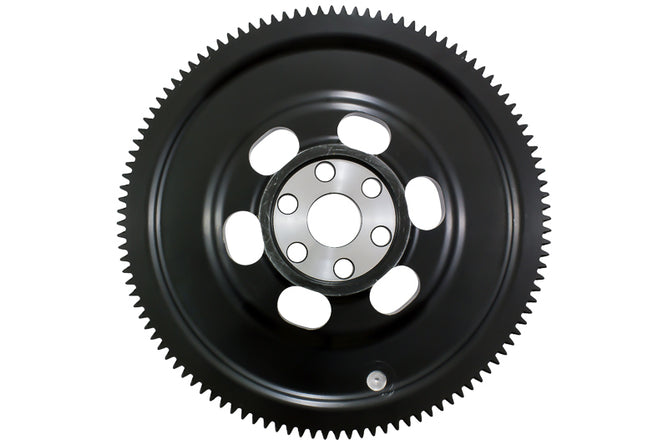 Noticeably improved engine response and acceleration, OE to mild gear rattle; Heat-treated forging for strength and toughness, induction-hardened ring gears for maximum life; One piece construction allows less opportunity for failure and provides uniform efficient heat transfer from the clutch disc. No more warped inserts or loose ring gears; Recommended for street and race use; Forged, CNC machined and dynamically computer balanced for smooth high RPM reliability