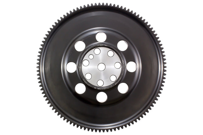 Noticeably improved engine response and acceleration, OE to mild gear rattle; Heat-treated forging for strength and toughness, induction-hardened ring gears for maximum life; One piece construction allows less opportunity for failure and provides uniform efficient heat transfer from the clutch disc. No more warped inserts or loose ring gears; Recommended for street and race use; Forged, CNC machined and dynamically computer balanced for smooth high RPM reliability