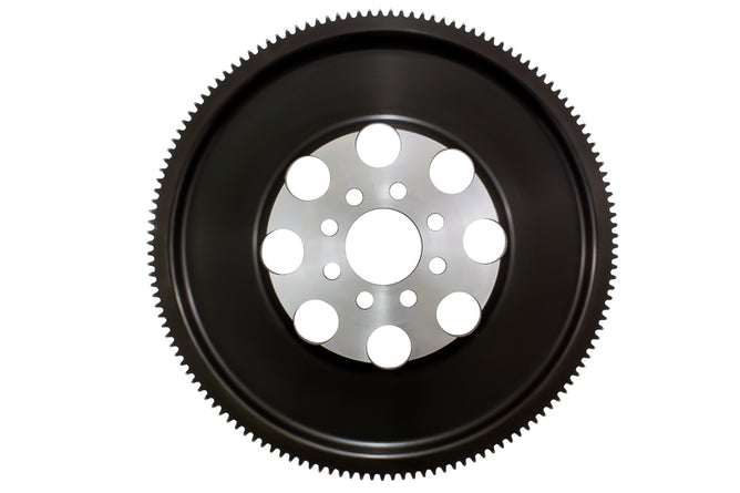 Noticeably improved engine response and acceleration, OE to mild gear rattle; Heat-treated forging for strength and toughness, induction-hardened ring gears for maximum life; One piece construction allows less opportunity for failure and provides uniform efficient heat transfer from the clutch disc. No more warped inserts or loose ring gears; Recommended for street and race use; Forged, CNC machined and dynamically computer balanced for smooth high RPM reliability